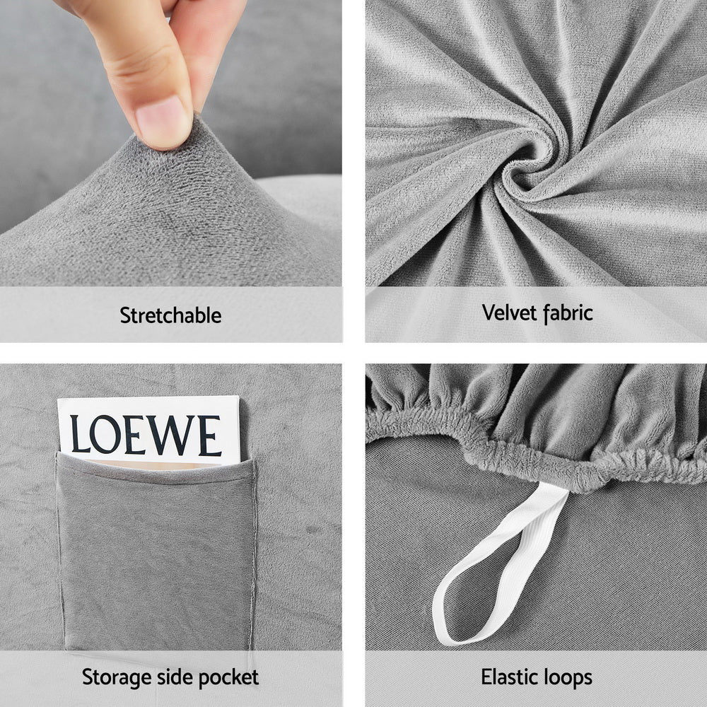 Artiss Recliner Chair Covers 1 Seater Velvet Grey