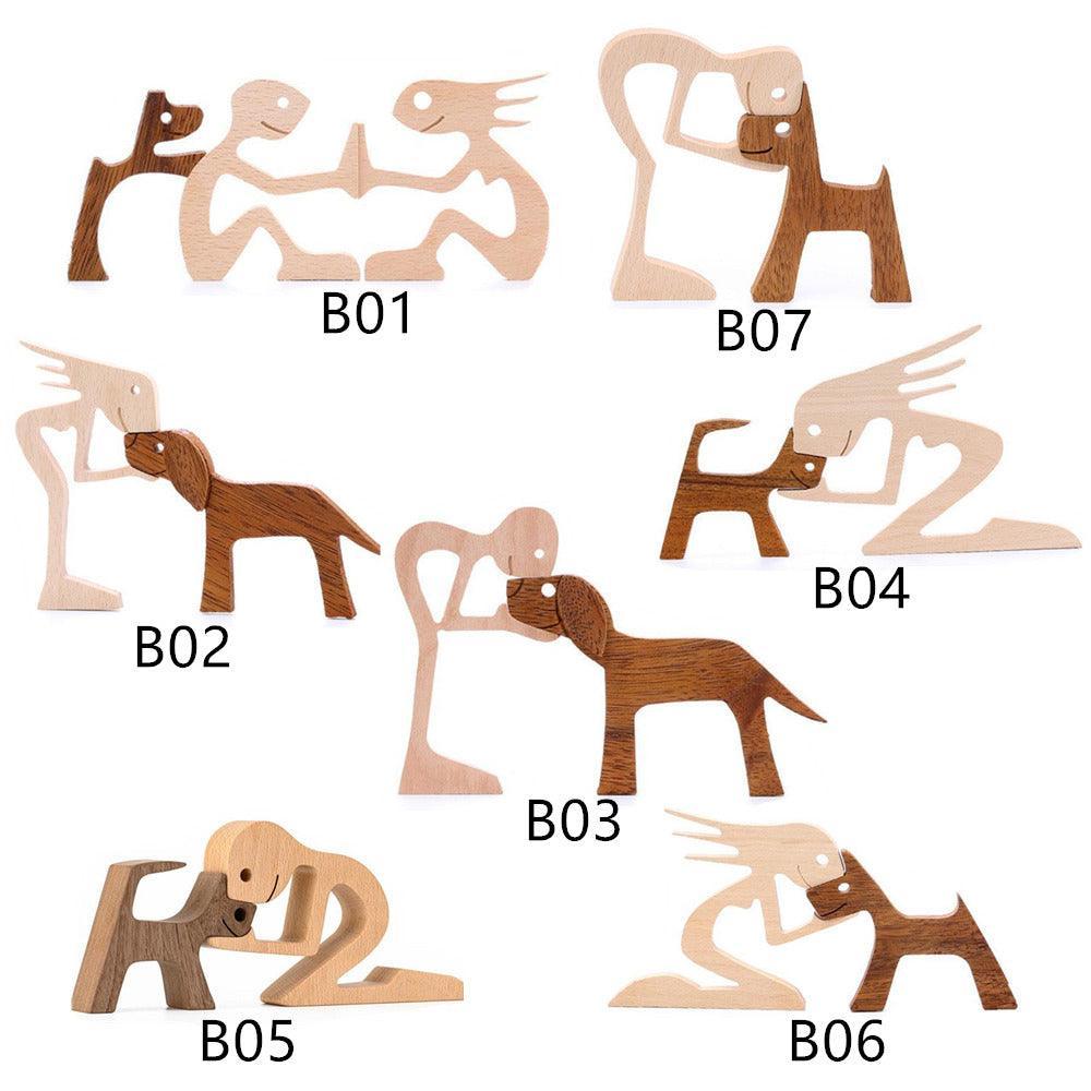 Handmade Wooden Statue Sitting Family and Dog Craft Home Decor - B07