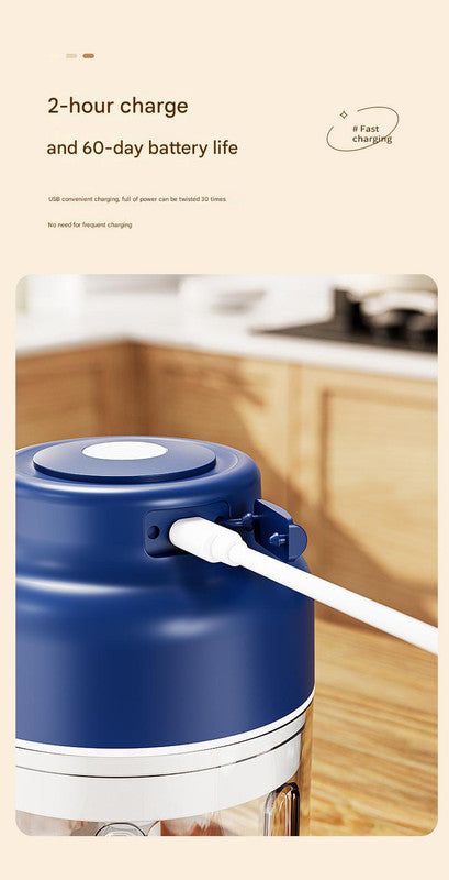 Powerful Mini Electric Food Chopper - USB Rechargeable Cordless Garlic & Meat Mincer(Blue 320ml + 6-blade knife)